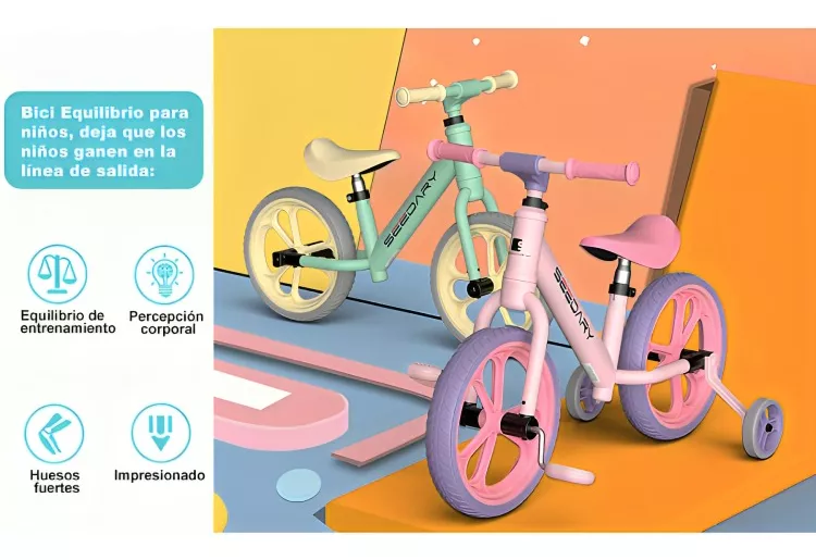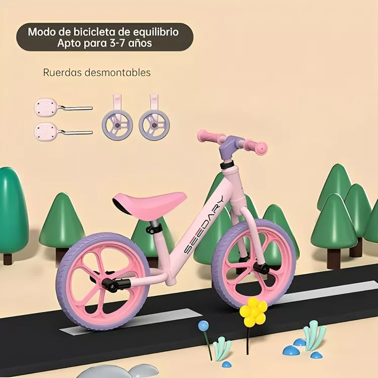 La bicicleta es perfecta para niños de 3 a 7 años, fomentando su confianza desde el primer uso. Con ruedas de entrenamiento desmontables, se adapta fácilmente a diferentes etapas de aprendizaje, proporcionando una solución personalizada que combina la funcionalidad de una bicicleta de equilibrio y una con ruedas de entrenamiento.