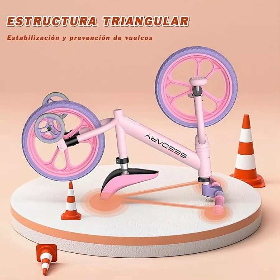 Con un asiento ajustable en altura de 38 a 48 cm y un peso ligero de 4 kg, esta bicicleta es fácil de transportar y soporta hasta 60 kg. A medida que tu hijo crece, la bicicleta se ajusta para seguir siendo su compañera de diversión y desarrollo.